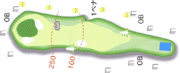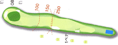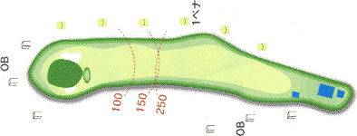 真っすぐなホールだがフェアウェイがやや狭い。 フェードボールで右方面中腹狙い。 |