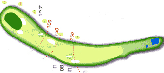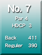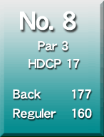 グリーンまで軽度の登りで池越えのショートホール。 グリーンオーバーはリカバリーが難しい。 |