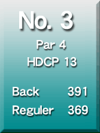 距離十分なミドルホール。 ティーショットは右クロスバンカーの左狙いがよい。 |