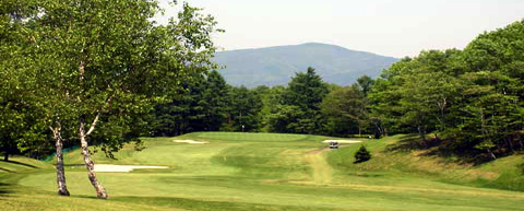 浅い谷底にあるグリーンへの打ち下ろしのショートホール。 グリーン上空は風がまいている時が多い。 |