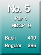 ダウンヒルで長打の快感を満喫できる。グリーン奥はすぐにOB。 的確な距離の判断が要。 |