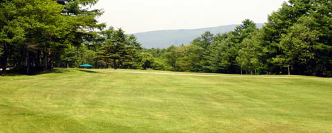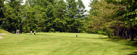 ティーからグリーンまでゆるいアップヒルのティーショット。 グリーンは、上から早い。 |